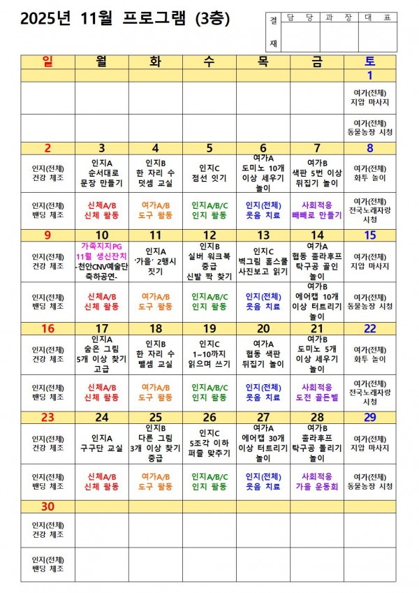 2025 11월 프로그램(3층) > 프로그램일정